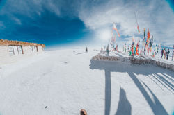Entre uma viagem e outra sempre encontrávamos alguns lugares que rendiam muitas fotos, e assim seguimos para o penúltimo destino, o Salar de Uyuni, que é até difícil descrever, apenas confiram as fotos, uma imensidão de branco onde o chão se mistura o céu no horizonte. E por fim, as margens do Lago Chungará, avistamos o imponente vulcão Parinacota, com seus belos flamingos.